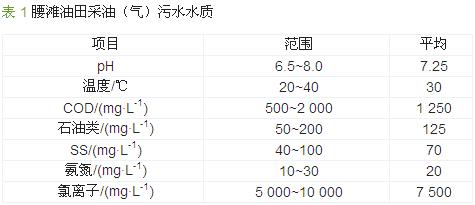 腰灘油田采油(氣)污水水質情況見表 1