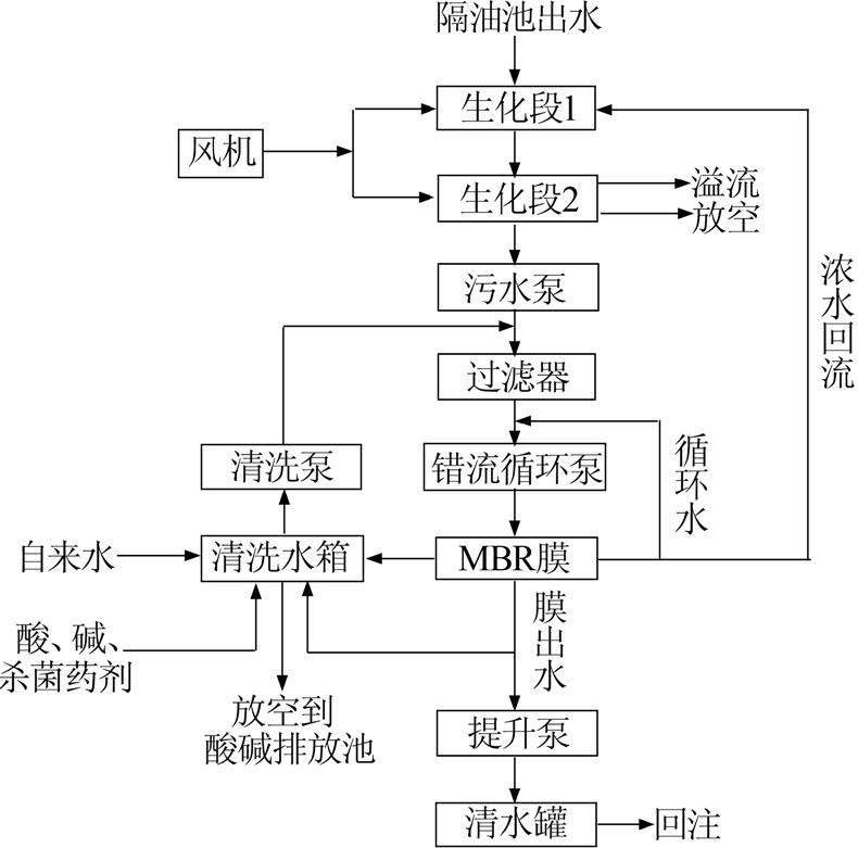 在充分調研基礎上形成的水處理工藝設計方案,有效地解決了設備體積小、含油廢水處理難度高的技術難點,在保證出水指標的基礎上,合理利用有效空間,形成了生化處理+膜處理的獨特處理工藝。經(jīng)處理后,管式膜出水油≤5 mg/L,懸浮物粒徑中值0.5 μm,SS 0.7 mg/L,SBR為0。