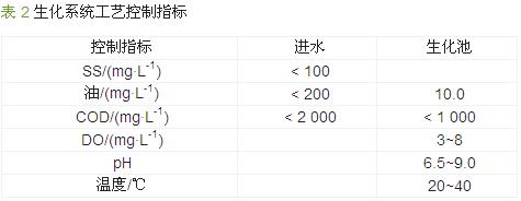 生化池設計:生化池材質選用PP板。PP板具有密度小、易焊接和加工,優(yōu)越的耐化性、耐熱性及耐沖擊性,無毒、無味,是目前**符合環(huán)保要求的工程塑料之一。其廣泛應用于耐酸堿設備、環(huán)保設備、廢水、廢氣排放設備的制作〔5, 6〕。生化系統(tǒng)工藝控制指標見表 2。